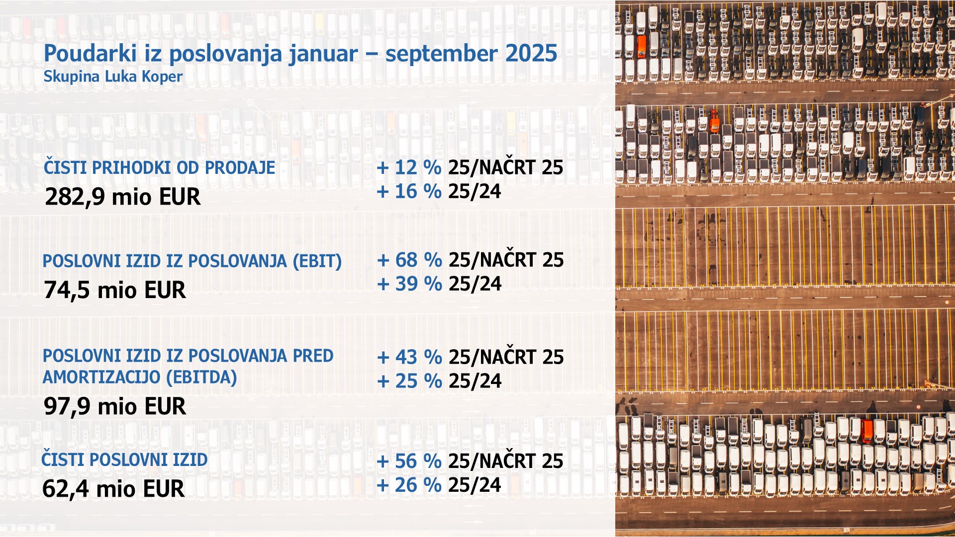 Nadzorni svet Luke Koper je 20. novembra 2025 potrdil poročilo o poslovanju Skupine in družbe za obdobje januar – september, oceno poslovanja za leto 2025 in poslovni načrt za leto 2026.