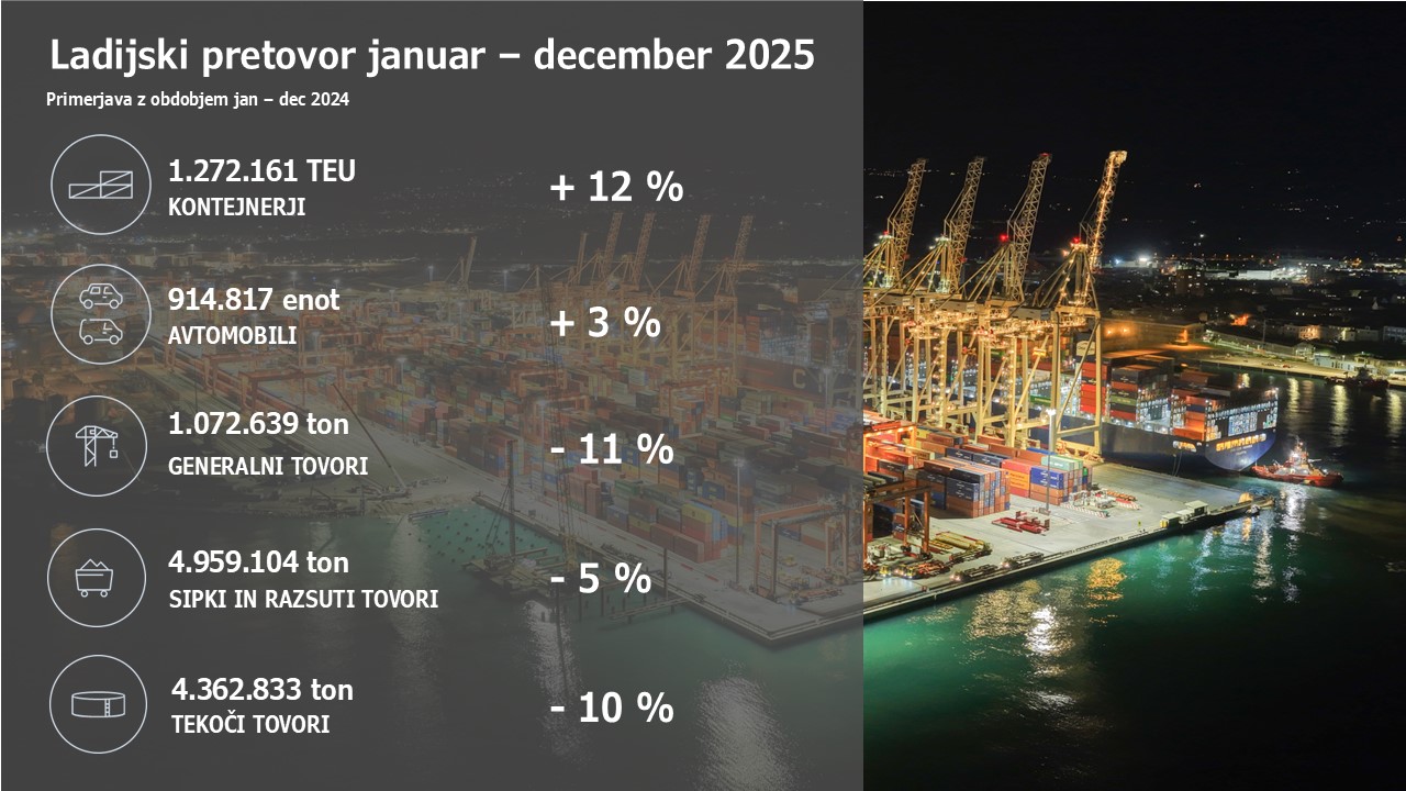 Na kontejnerskem terminalu smo zabeležili visoko – 12 odstotno rast in s pretovorom 1.272.161 kontejnerskih enot (TEU) postavili nov absolutni mejnik. Več pretovora so prinesli predvsem novi posli, vezani na opremljanje in oskrbo proizvodnih obratov na naših zalednih trgih ter prestrukturirani ladijski servisi iz Daljnega vzhoda in znotraj Sredozemlja. Na avtomobilskem in RO-RO terminalu smo se z 914.817 pretvorjenimi enotami zelo približali rekordu iz leta 2023, a ga za las nismo presegli. 3 odstotno rast v primerjavi z letom 2024 je poganjal predvsem uvoz vozil različnih proizvajalcev s Kitajske, povečale so se tudi izvozne količine avtomobilov za sredozemske države. Na blagovni skupini generalni tovori je bil dosežen nižji pretovor, predvsem zaradi manjšega pretovora lesa, kavčuka in izdelkov iz železa ter jekla, po drugi strani pa še naprej beležimo rast povpraševanja raznovrstnih projektnih tovorov. Nižji je bil tudi pretovor sipkih in razsutih tovorov, predvsem na račun manjšega pretovora železove rude.